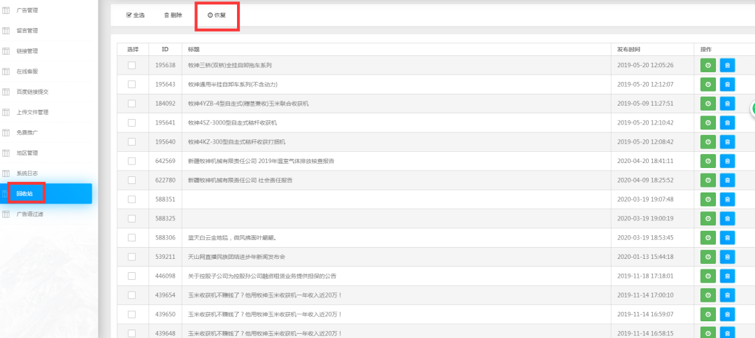 信息誤刪,悔不當(dāng)初?沒關(guān)系,萬家燈火CMS系統(tǒng)回收站上線,再也不用擔(dān)心信息刪除后找不回來了。