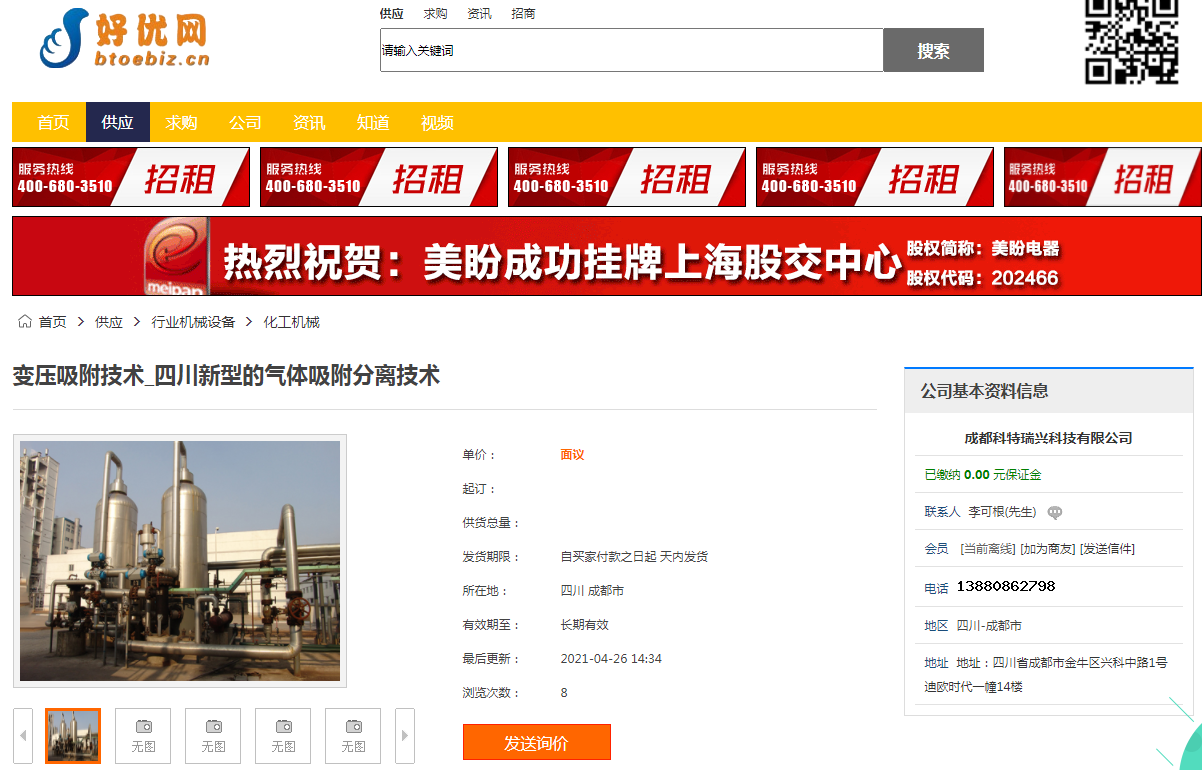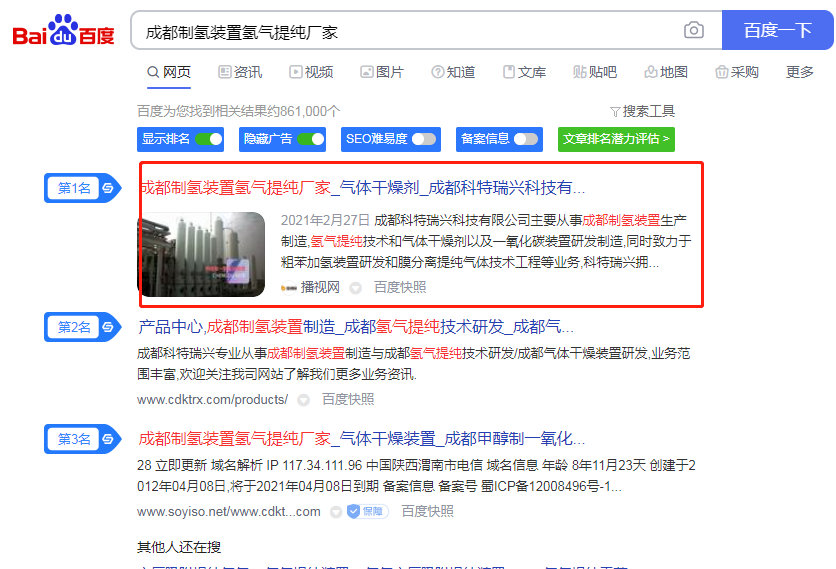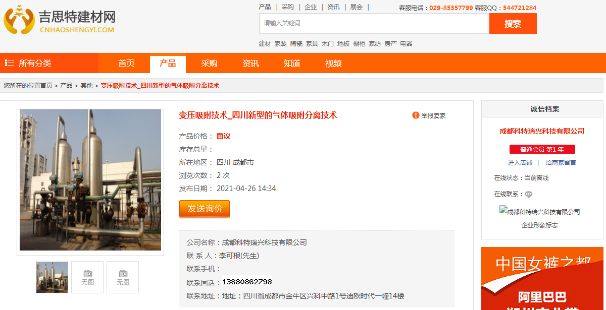 投放824條商盟,成都氯乙烯專用吸附劑、2000方甲裂制氫裝置、1.5萬方甲裂制氫、800方焦?fàn)t煤氣提氫、1.5萬方氫氣提純裝置、900方甲裂制氫、成都氧化鋁專用硅膠等關(guān)鍵詞都在吉斯特建材網(wǎng)、好優(yōu)網(wǎng)、商機(jī)購(gòu)、365資源網(wǎng)等平臺(tái)展現(xiàn),大大提高了搜索引擎抓取收錄機(jī)會(huì)。