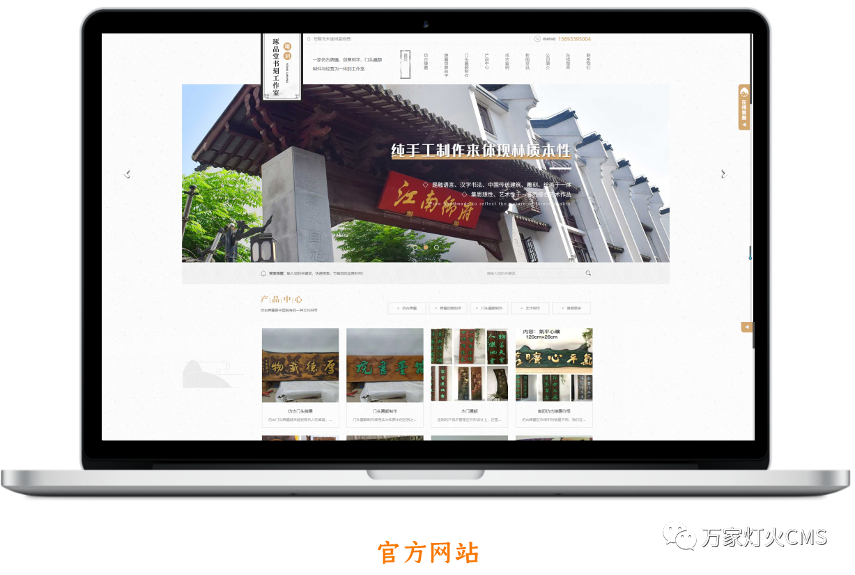 根據(jù)琢品堂的古風(fēng)文化特色,萬家燈火制定了適合的網(wǎng)站,并將公司核心產(chǎn)品:仿古牌匾、牌匾創(chuàng)意刻字、門頭匾額制作重點(diǎn)突出。萬家燈火CMS系統(tǒng)制作完成后,宋總對(duì)效果非常滿意,便馬不停蹄安排上線。