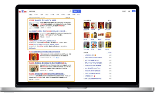 給大家舉個(gè)例子,搜索“黔酒原著酒”,你會發(fā)現(xiàn)百度首頁都是糧草倉有限公司的廣告位。