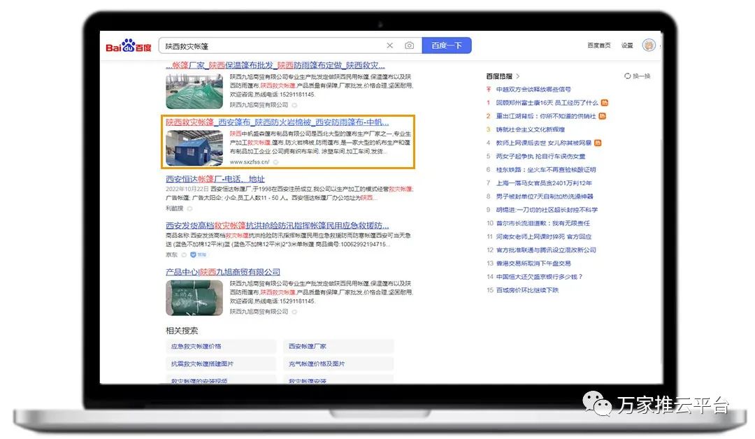>>>分類信息:寶雞戶外救災(zāi)帳篷、渭南篷布等關(guān)鍵詞均在百度、360等搜索引擎平臺首頁展現(xiàn)。